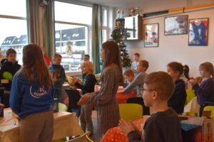 Daarna lekker smullen van al het lekkers dat klaar stond.De pupillen kregen daar hun prijzen uitgereikt. Toch spannend wie er wat gewonnen heeft.