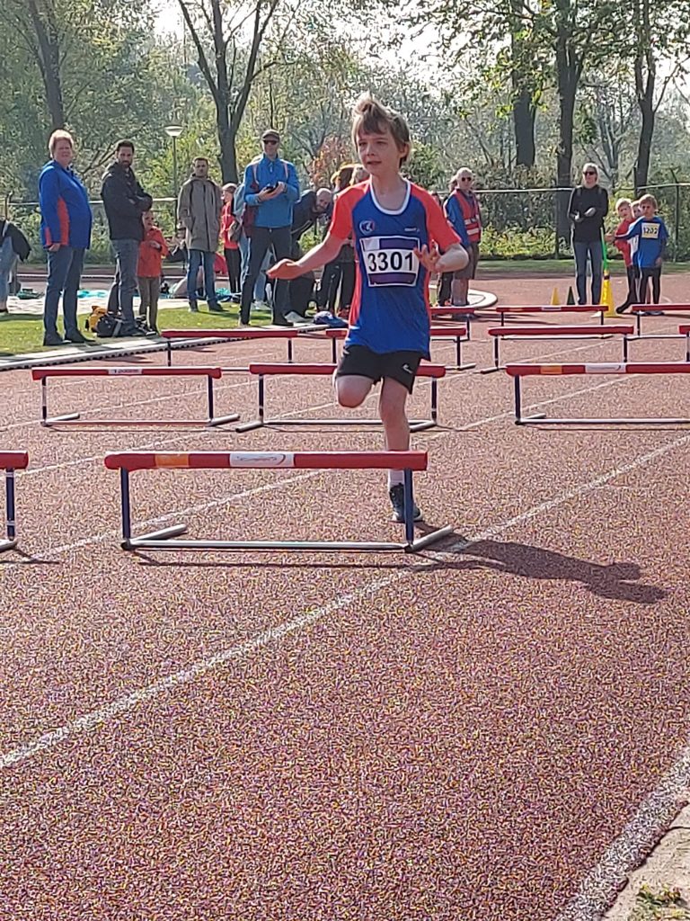 Daags erna werd de eerste ZHM (Zuid-Hollands Midden) C/D junioren blokmeerkamp gehouden in Leiden. Op de prachtige atletiekbaan van Leiden Atletiek mochten Ruben, Thiago, Sydney, Janno, Robin, Kyara, Evi, Manouk en Aelin hun beste kunnen laten zien. Wat vooral opvalt bij dit stel tieners is de onderlinge band, de samenwerking, waarbij de jongens en meisjes elkaar stimuleren, aanmoedigen, opzwepen, feliciteren, opbeuren en dollen…daar zou mening volwassen team een voorbeeld aan kunnen nemen! Alle atleten hebben een heerlijke middag gehad en menig PR werd verbeterd. Top 10 eindklasseringen vielen ten deel aan Janno de Pater (7e plaats, 23,20 sec. op de 150m / 6.22 m bij het kogelstoten / 1.25 m hoogspringen), Robin Hermeler (9e plaats, 23,77 sec. op de 150m / 6.76 m bij het kogelstoten / 1.25 m hoogspringen) en Aelin Smits (9e plaats, 23,29 sec. op de 150m / 17.49 m bij het speerwerpen / 4.50 m polsstok verspringen).