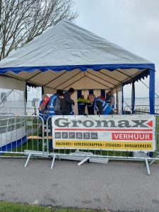 De finishtent had het zwaar te verduren door de harde wind Op zaterdag 18 november werd de 20e Gromax Reeuwijkse Hout Cross gehouden.